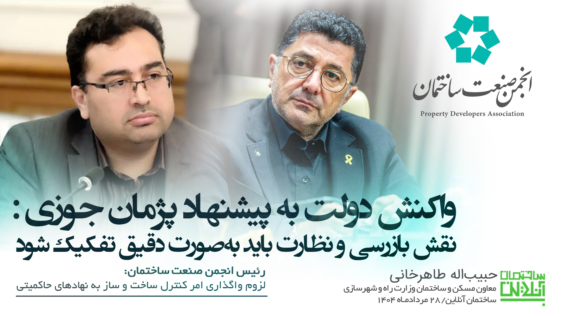 چندی پیش رئیس انجمن صنعت ساختمان در یک مصاحبه تلویزیونی پیشنهاد کرد مسئولیت نظارت بر پروژه‌های ساختمانی به نهادهای حاکمیتی واگذار شود. امروز معاون مسکن و ساختمان وزارت راه و شهرسازی به این پیشنهاد واکنش نشان داد و توضیح داد که بازرسی و نظارت دو مقوله متفاوت هستند.